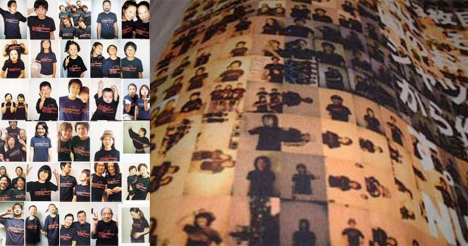 翌2002年、Tシャツをご購入くださった皆さまに、「平和への願いを込めて、9月11日にTシャツを着て写真を送ってください」というお手紙を送りました。