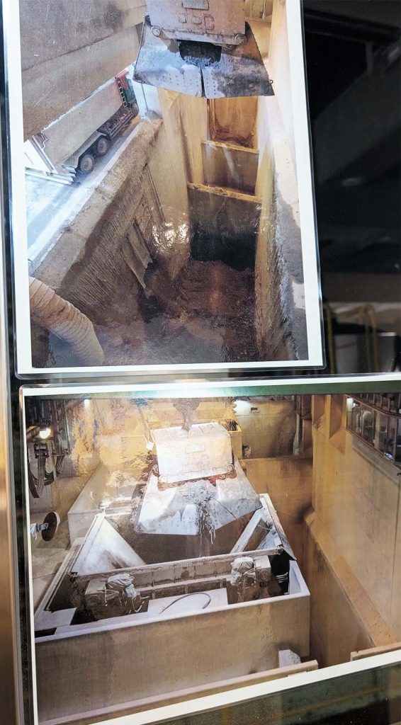 集められた灰は灰ピットに集められ、トラックで埋立地に運び込まれます。