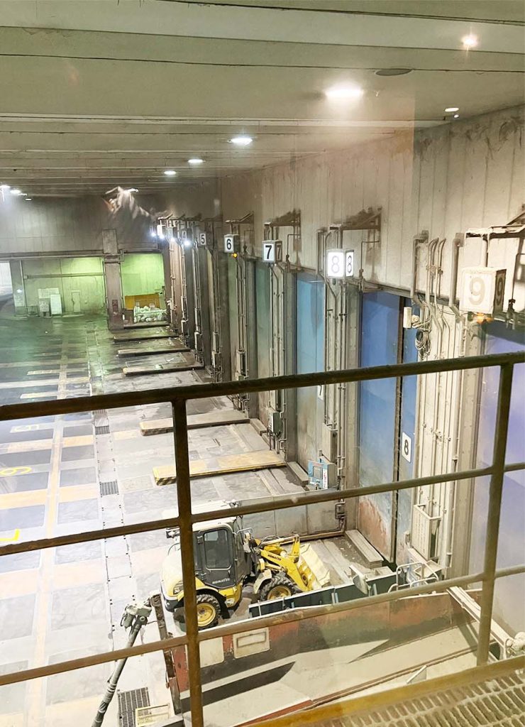 点検後、プラットフォームの扉からトラックで集めてきたごみをごみピット(ごみを貯留する場所)に投入し、貯蔵します。