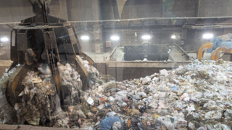 ごみを投入する前に、ペットボトルや産業廃棄物が混ざっていないか、職員によって厳しく確認されます。