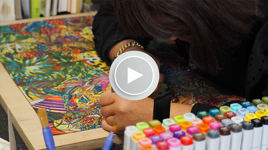 無我夢中で絵に命を吹き込む様子をご覧ください。